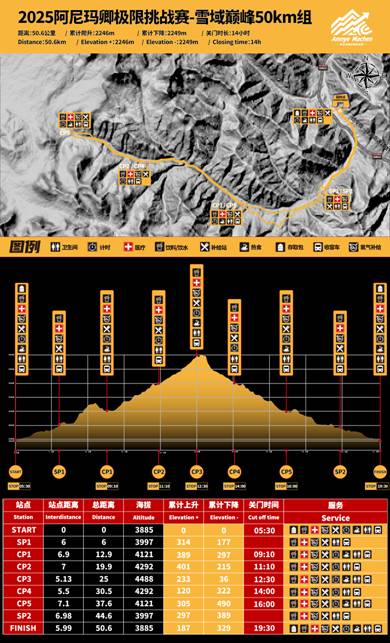 首届赛事共设置雪域巅峰组(50千米)和大众体验组(8千米)两个组别,开放122个名额。雪域巅峰组包含个人赛、商学院团体赛、企业组团体赛,完赛后可获得国际越野跑协会(itra)积分。该组要求选手国际越野跑协会(itra)个人积分必须达到400分及以上,或者提供1年内1次50千米及以上或1年内2次40千米及以上比赛完赛证明。大众体验组不限门槛,面向所有热爱高原运动的挑战者,路线设置于雪山缓坡区域,线路相对平缓、安全,兼具自然景观与文化体验。报名通道已在赛事公众号“阿尼玛卿极限挑战赛”开启。