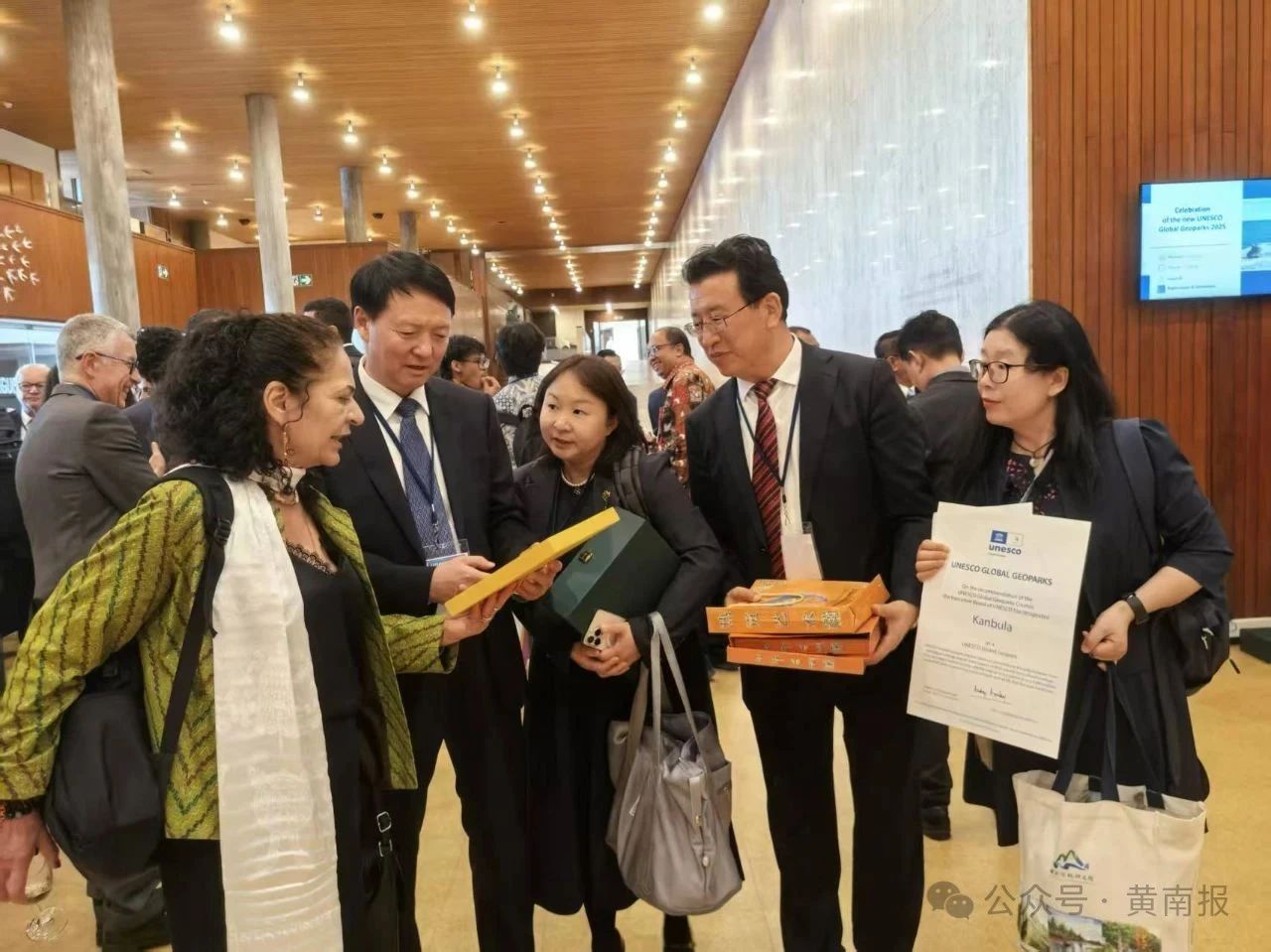 授牌仪式上,青海省黄南藏族自治州委书记朱战民作为坎布拉联合国教科文组织世界地质公园的代表,从教科文组织自然科学助理总干事莉迪亚·布里托女士手中接过了教科文组织总干事亲笔签署的“坎布拉联合国教科文组织世界地质公园”证书,这标志着坎布拉世界地质公园建设将迎来新的发展机遇。