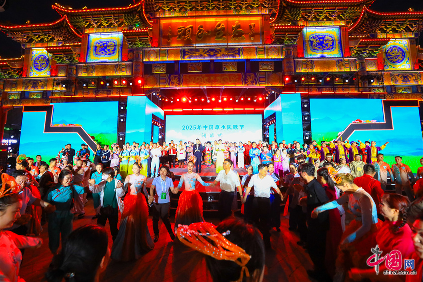 7月6日晚,由文化和旅游部主办的2025年中国原生民歌节在内蒙古自治区呼和浩特市新城区恼包村闭幕。闭幕演出以原生民歌大联欢的方式,用120分钟的精彩演出展现了来自祖国各地的民歌魅力。