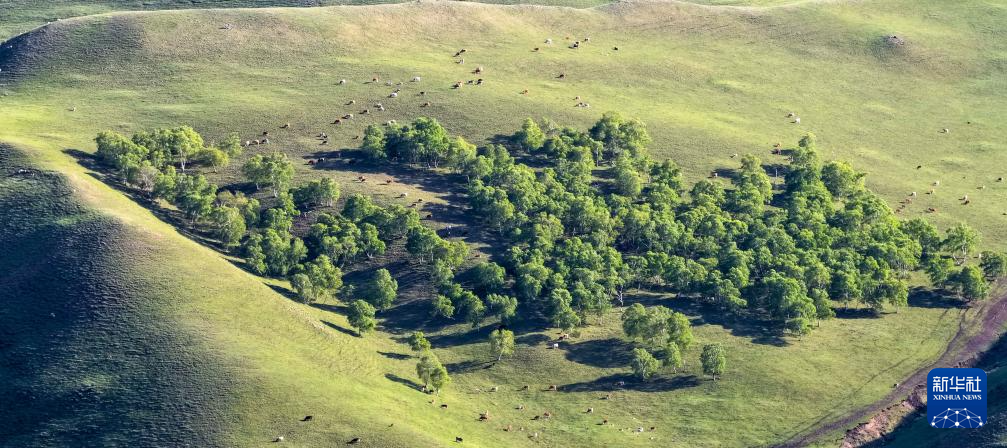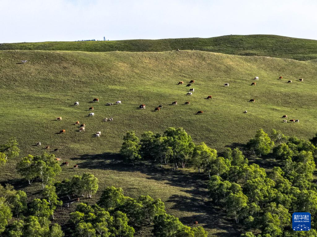 6月5日,牛群在内蒙古大青山国家级自然保护区吃草(无人机照片)