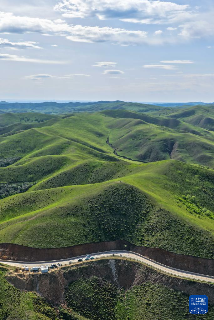 这是6月5日在内蒙古大青山国家级自然保护区拍摄的草原风光(无人机照片)