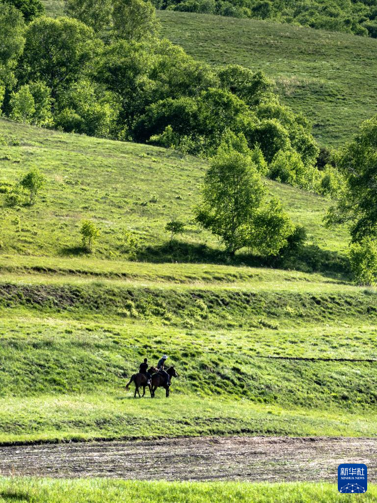 6月5日,游客在内蒙古大青山国家级自然保护区骑马