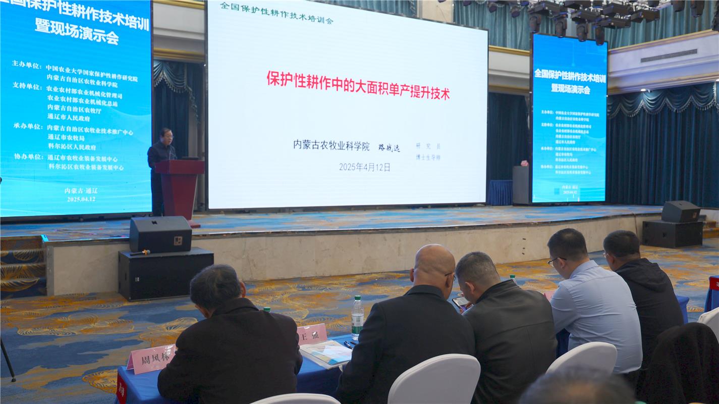 4月12日,由中国农业大学国家保护性耕作研究院与内蒙古自治区农牧业科学院联合主办的2025年全国保护性耕作技术培训暨现场演示会在通辽举行。来自各省区农机主管部门负责人、高等院校、科研院所的专家学者、相关企业的代表,内蒙古各盟市、旗县农机管理部门的同志共390余人齐聚一堂,共商东北黑土地保护性耕作行动计划推进大计,共绘现代化农业发展蓝图伟业。