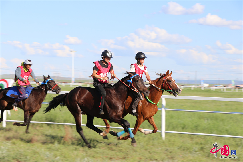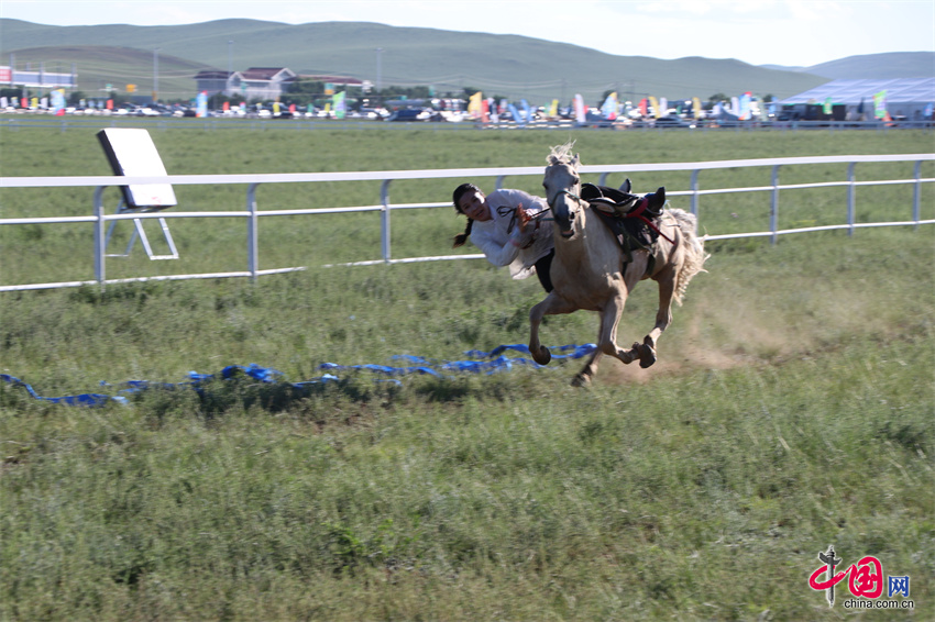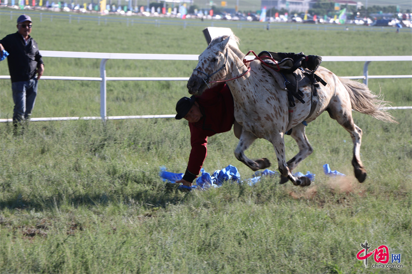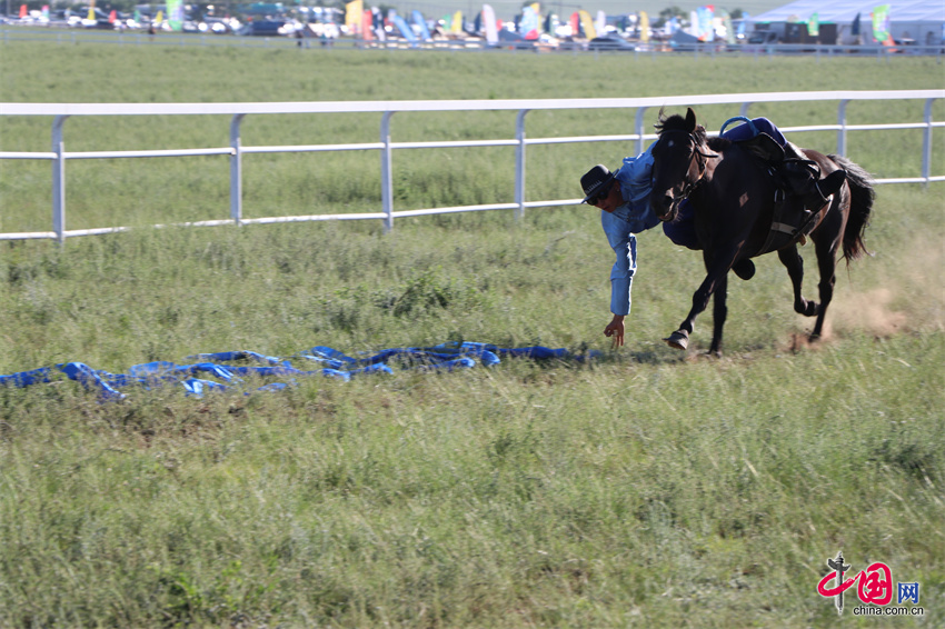 7月20日,内蒙古自治区第35届草原那达慕的赛马比赛在内蒙古锡林郭勒盟锡林浩特市举行,跑马拾哈达、跑马射箭等比赛项目陆续展开。